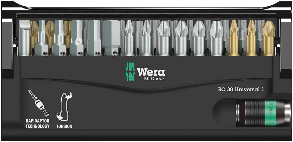 29 bits in a minimum of space; simple removal and reinsertion of the bits. Rapidaptor holder ensures rapid bit change. Universal bits fitted for diverse applications; robust Bit-Check.