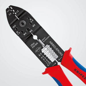 For cutting cables, stripping wire and crimping insulated and non-insulated terminals, connectors and plug type connectors. With threaded holes for cutting copper and brass screws threaded M 2.6 / M 3 / M 3.5 / M 4 and M 5. Bolted joint for higher stability and even movement.