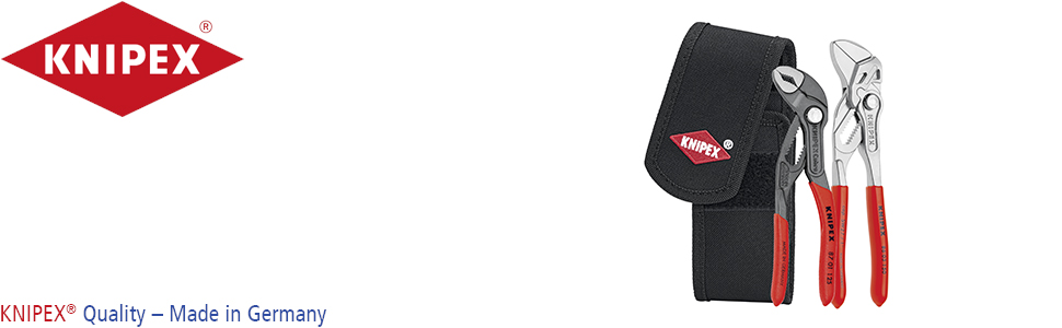 ![]() | KNIPEX 00 20 72 V01 mini pliers set This mini pliers set from KNIPEX is suitable for mechanics and technicians who want to have their tools quickly to hand during installation and servicing jobs. The set contains the KNIPEX 86 03 150 mini pliers wrench, which combines pliers and a wrench in a single tool. The high-tech KNIPEX Cobra 87 01 125 water pump pliers are also included. These compact versions of the KNIPEX pliers prove to be extremely resilient tools in everyday work. |