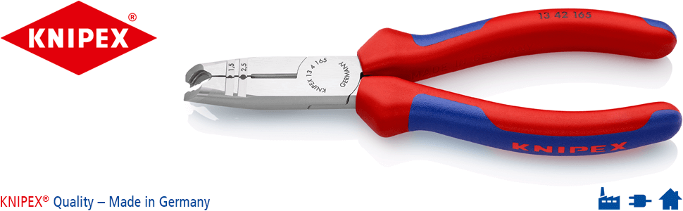 ![]() | Knipex dismantling pliers: a lot of functions with low weight The 13 42 165 dismantling pliers shorten work considerably during the last centimetres and millimetres of electrical installation work, because they can be used for convenient, time-saving dismantling and wire stripping. Some changes of tool are superfluous, and the pliers are pleasingly light. The great benefits of the tools and their safe, comfortable use are the results of decades of experience making pliers, continuous product development and the commitment by Knipex towards high quality standards. |