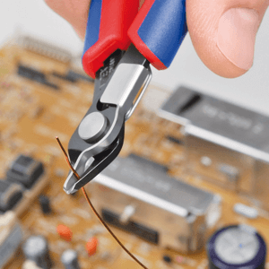 The integrated wire clamp prevents wire sections from springing back in an uncontrolled manner: a safety aspect, particularly when cutting wires in enclosures containing electronic assemblies.