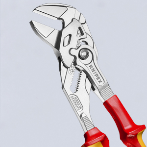 ![]() | Pliers and wrench in a single tool The Knipex pliers wrench 86 06 250– for classic applications such as plumbing The pliers wrench combines many functions: It replaces an entire set of wrenches in metric and imperial sizes, can be adjusted very quickly and directly on the workpiece at the touch of a button, as well as handling all gripping widths up to 52 mm or 2 inches thanks to infinite adjustment. The joint pin engages securely, preventing unintentional shifting. The smooth gripping jaws are parallel to each other and grip the workpiece without damaging edges or sensitive surfaces – work directly on chrome! |